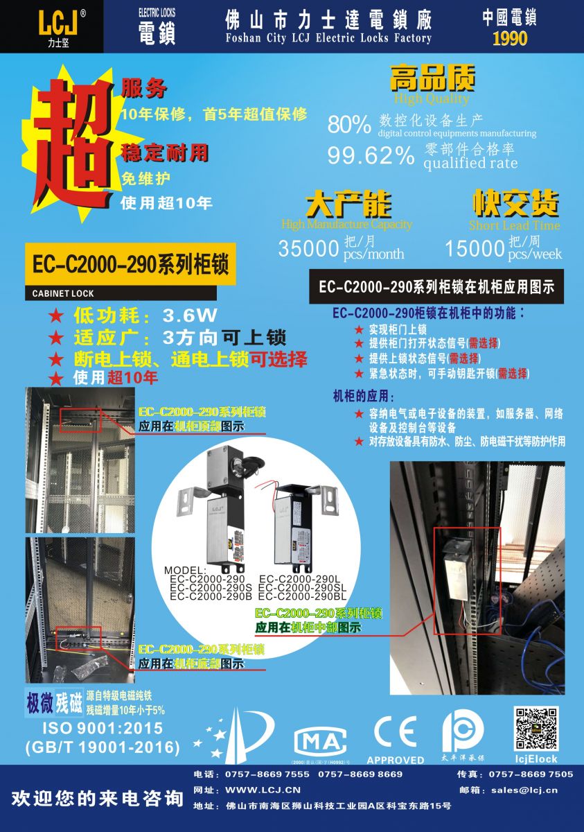 EC-C系列柜鎖,安裝于機房中的機柜,授權管理服務器,安全可靠!