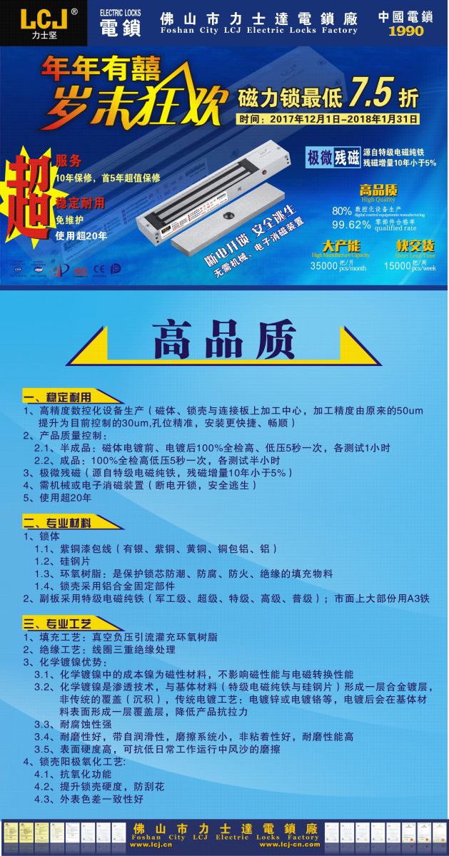 下一篇:大產(chǎn)能|力士堅(jiān)磁力鎖年年有囍低至7.5折