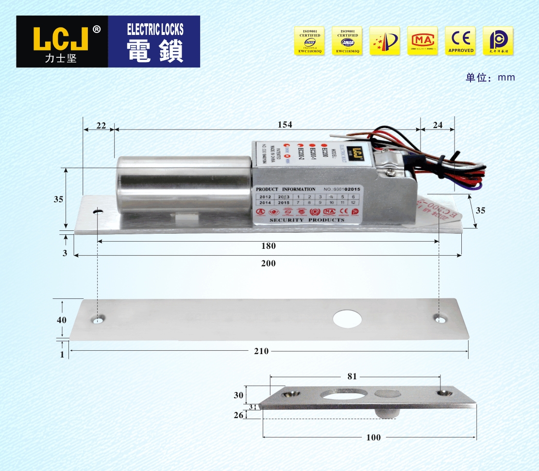 EC電插鎖是按照《電插鎖》標(biāo)準(zhǔn)自主設(shè)計開發(fā),擁有實用新型、外觀等專利。
