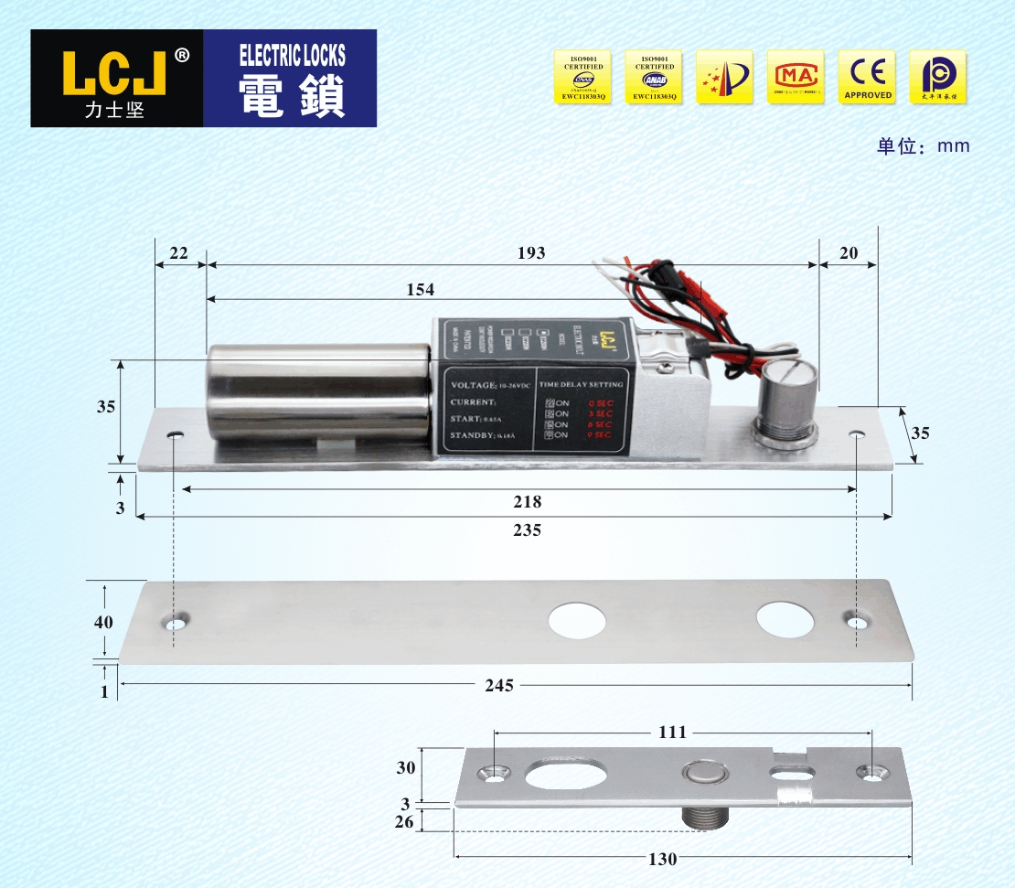 EC電插鎖是按照《電插鎖》標(biāo)準(zhǔn)自主設(shè)計開發(fā),擁有實(shí)用新型、外觀等專利。